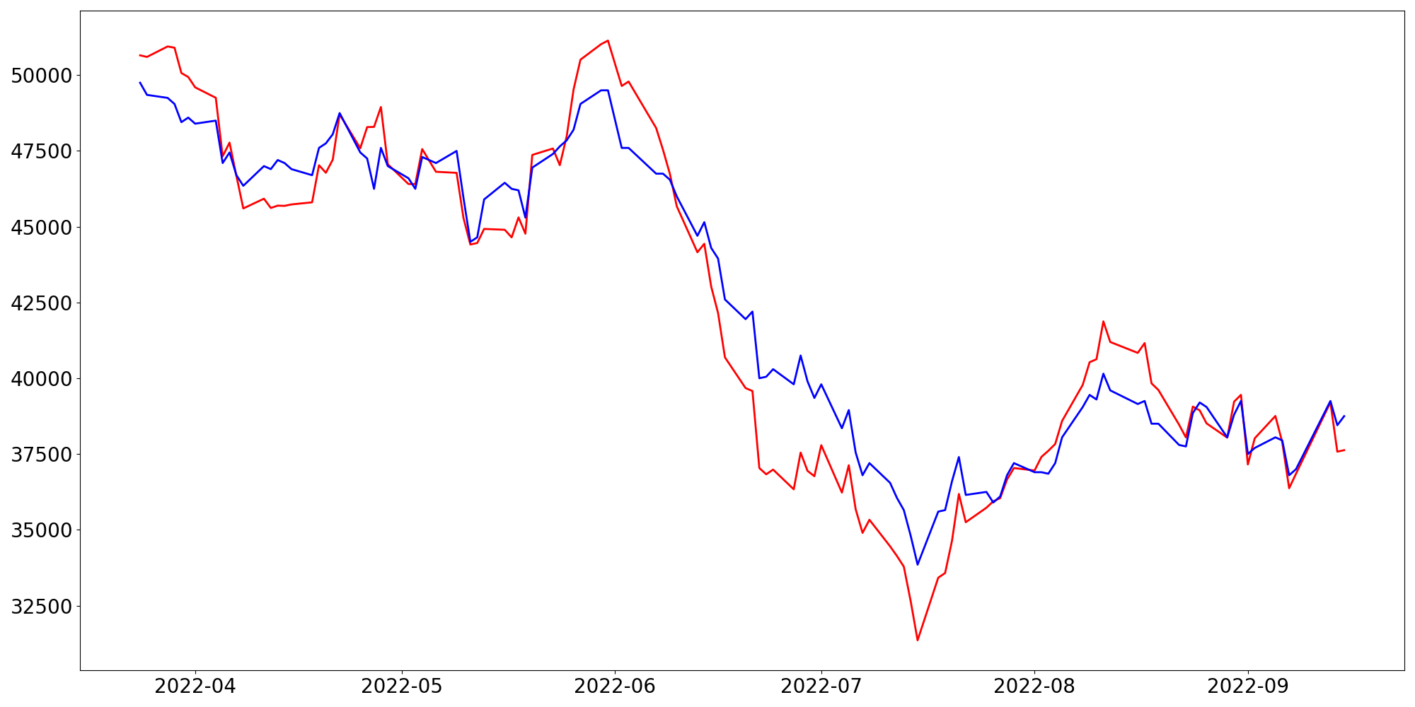 [ - : 실제값(종가) / - : 예측값(종가) ]