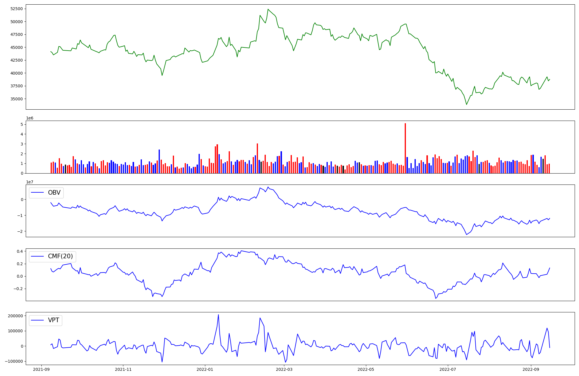 | OBV | CMF | VPT | |