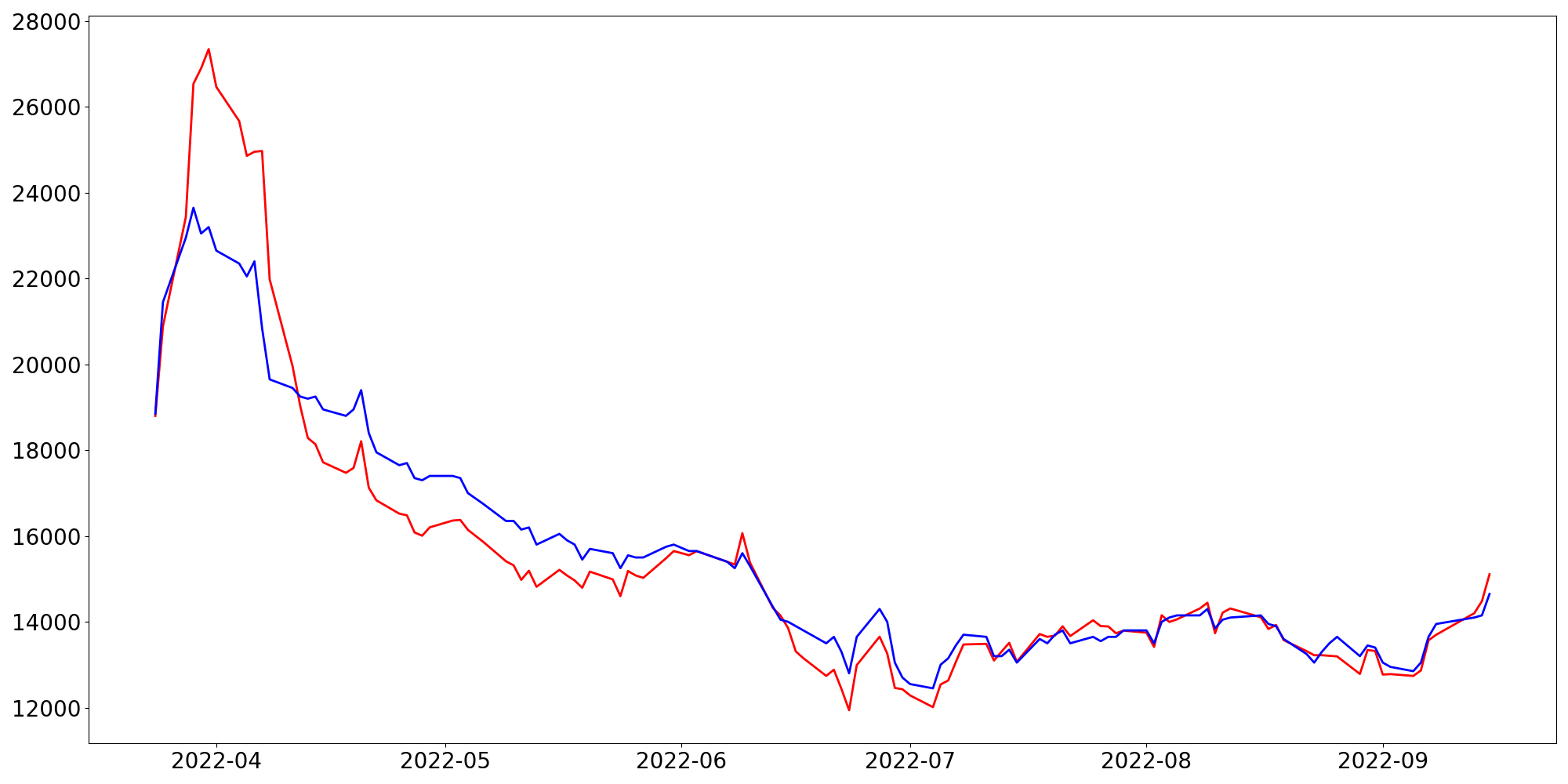 [ - : 실제값(종가) / - : 예측값(종가) ]