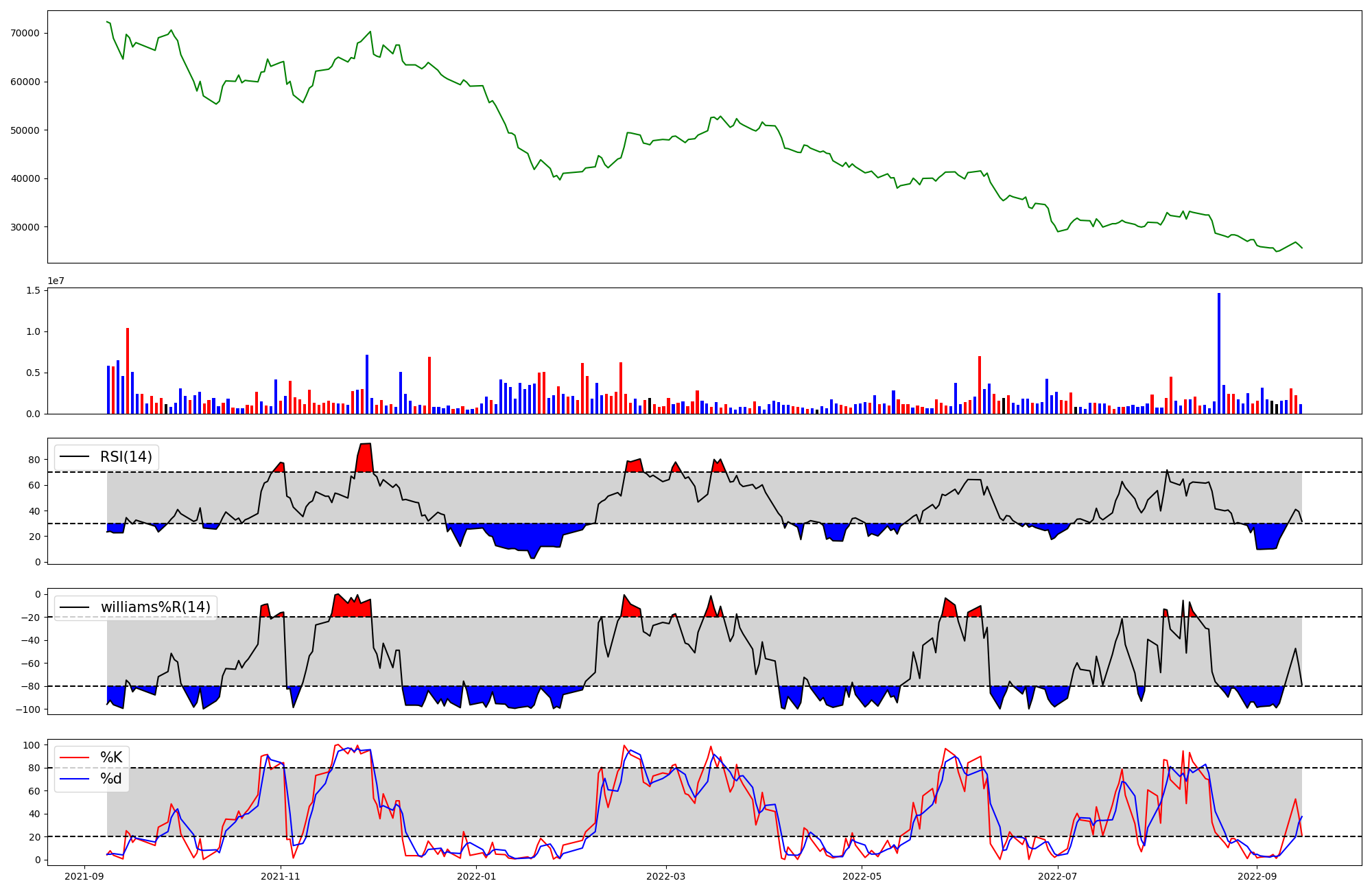 | RSI | Williams %R | stochastic(%K) | |