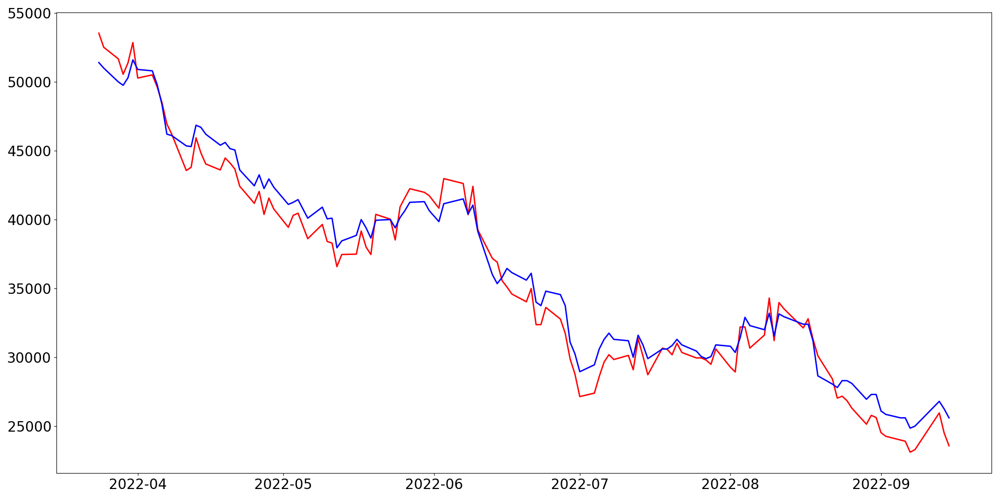 [ - : 실제값(종가) / - : 예측값(종가) ]
