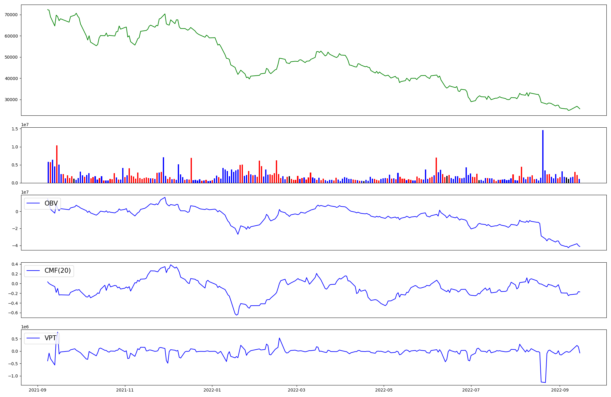 | OBV | CMF | VPT | |