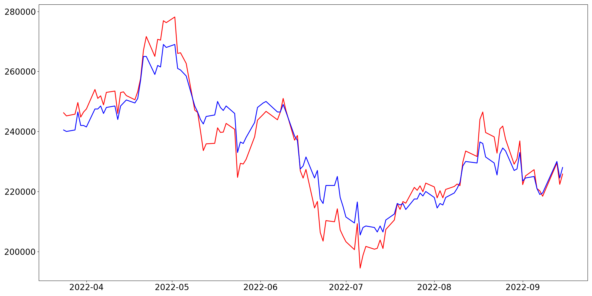 [ - : 실제값(종가) / - : 예측값(종가) ]