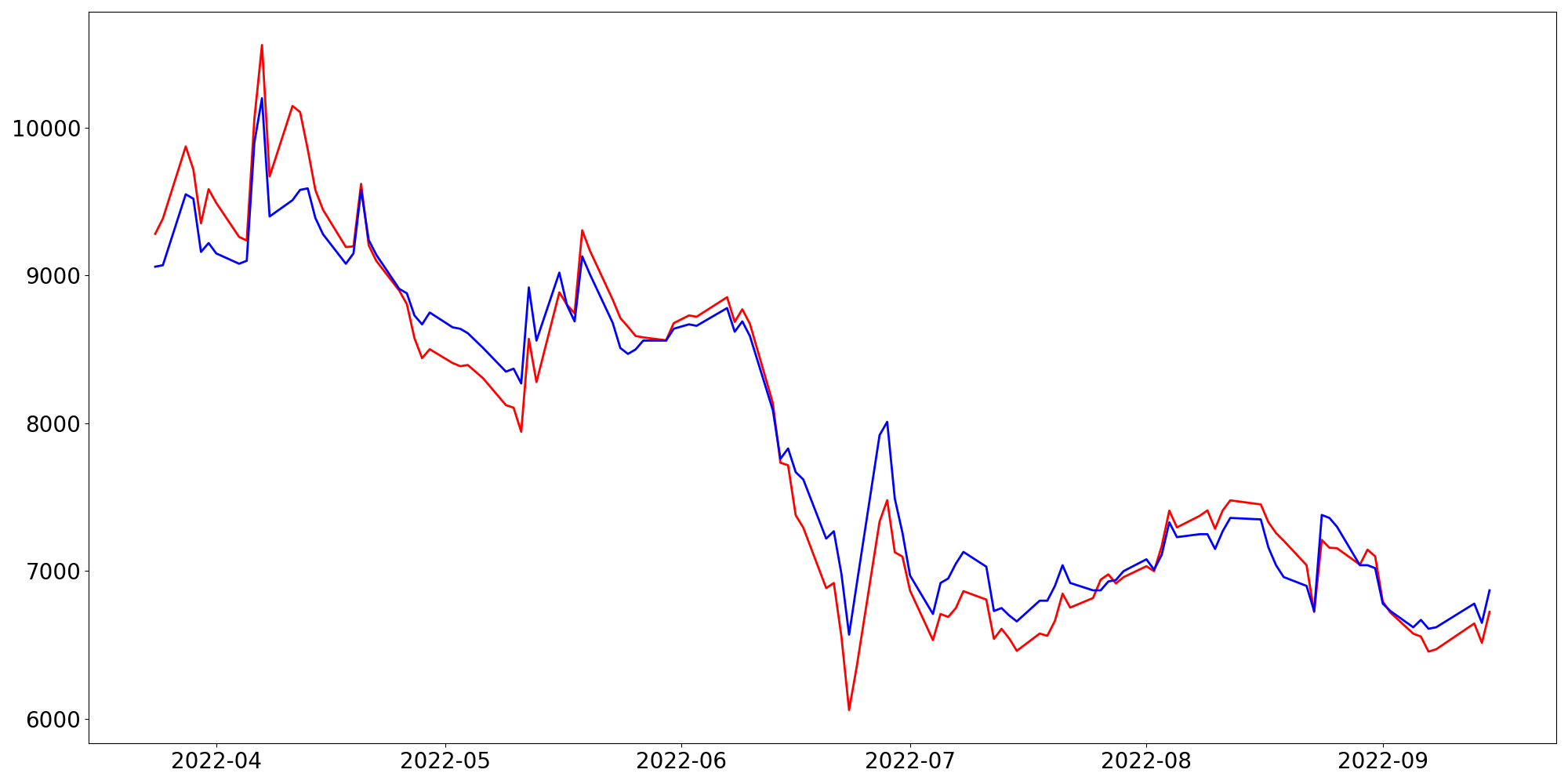 [ - : 실제값(종가) / - : 예측값(종가) ]