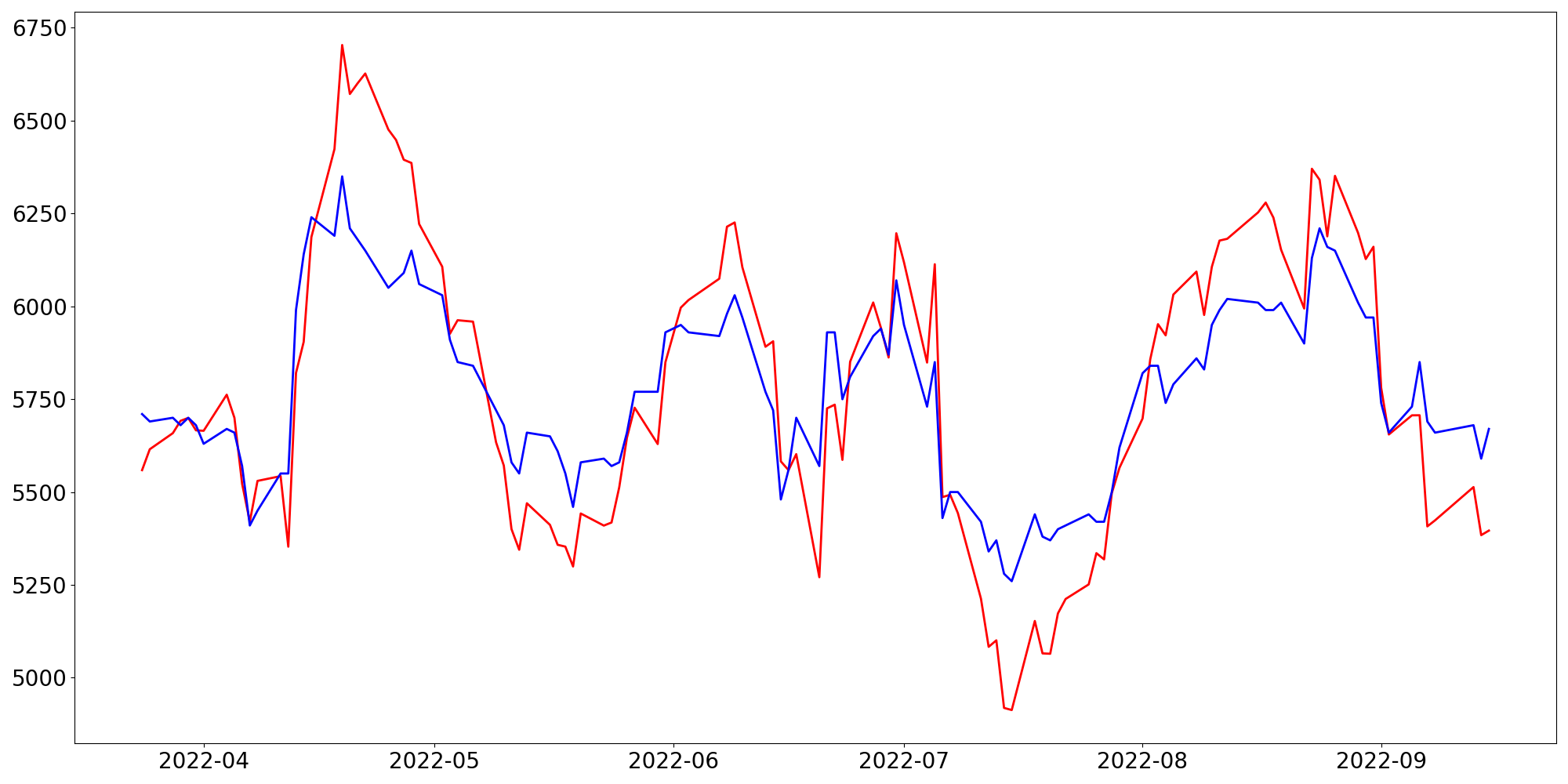 [ - : 실제값(종가) / - : 예측값(종가) ]