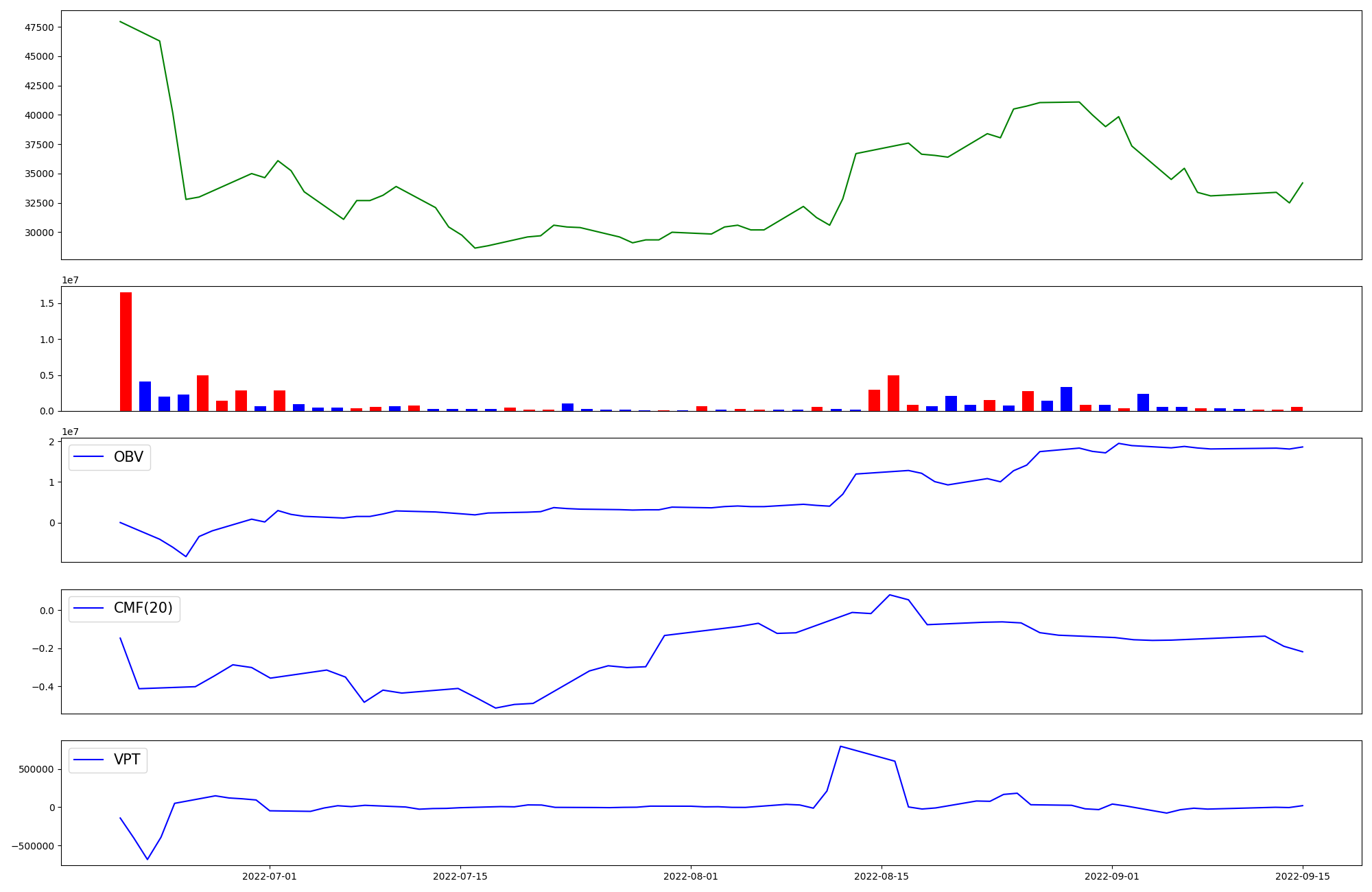 | OBV | CMF | VPT | |