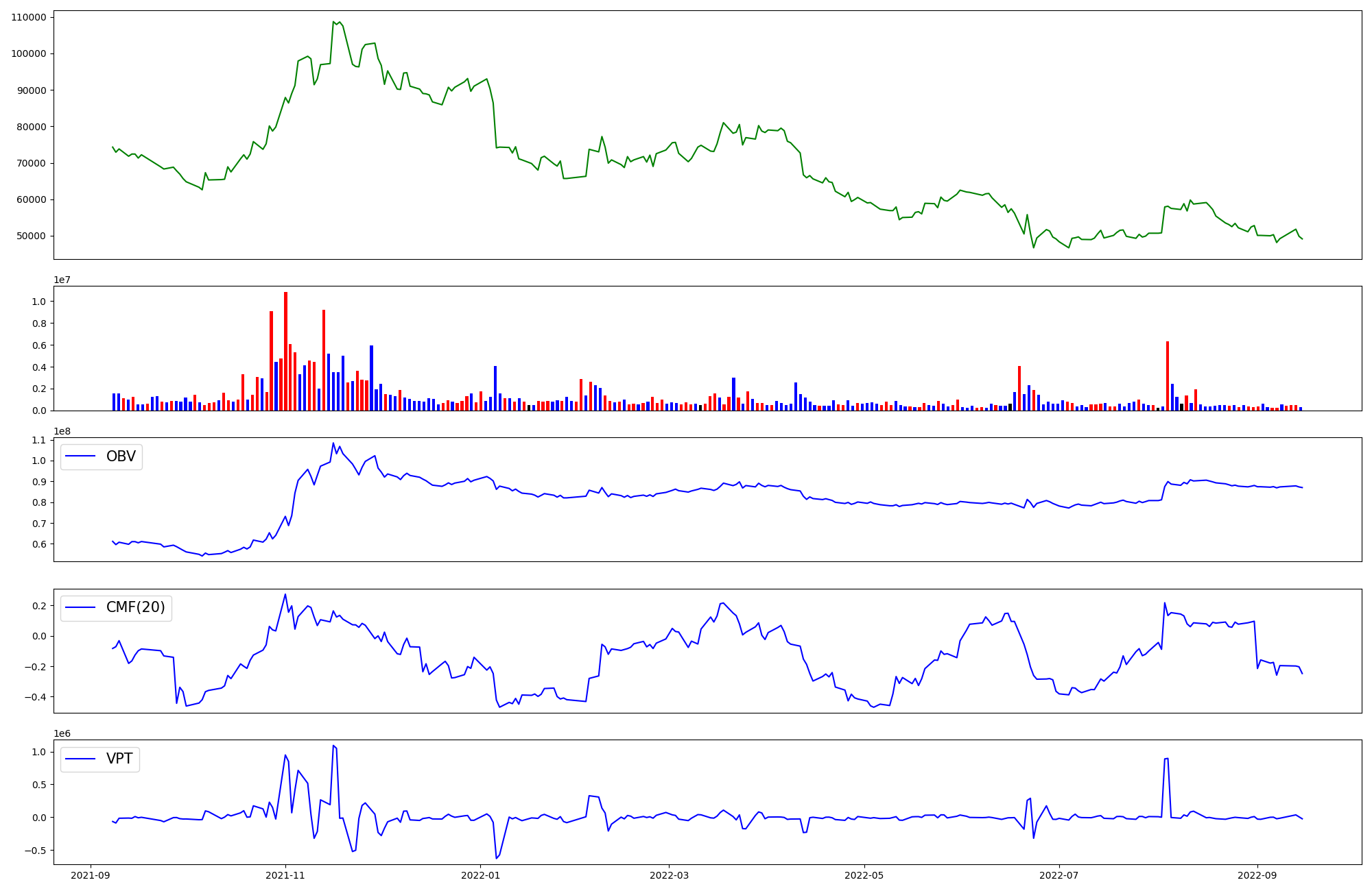 | OBV | CMF | VPT | |