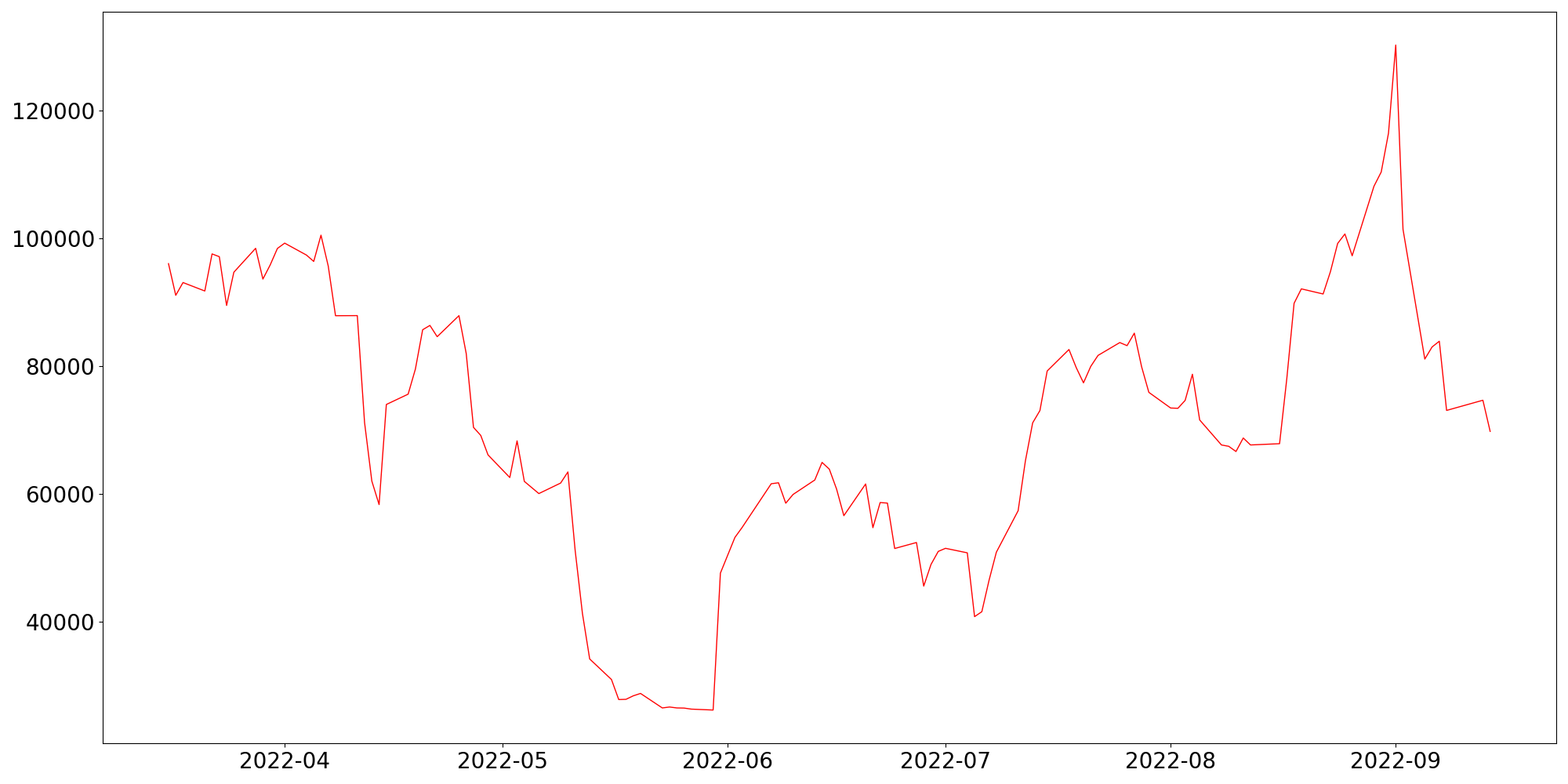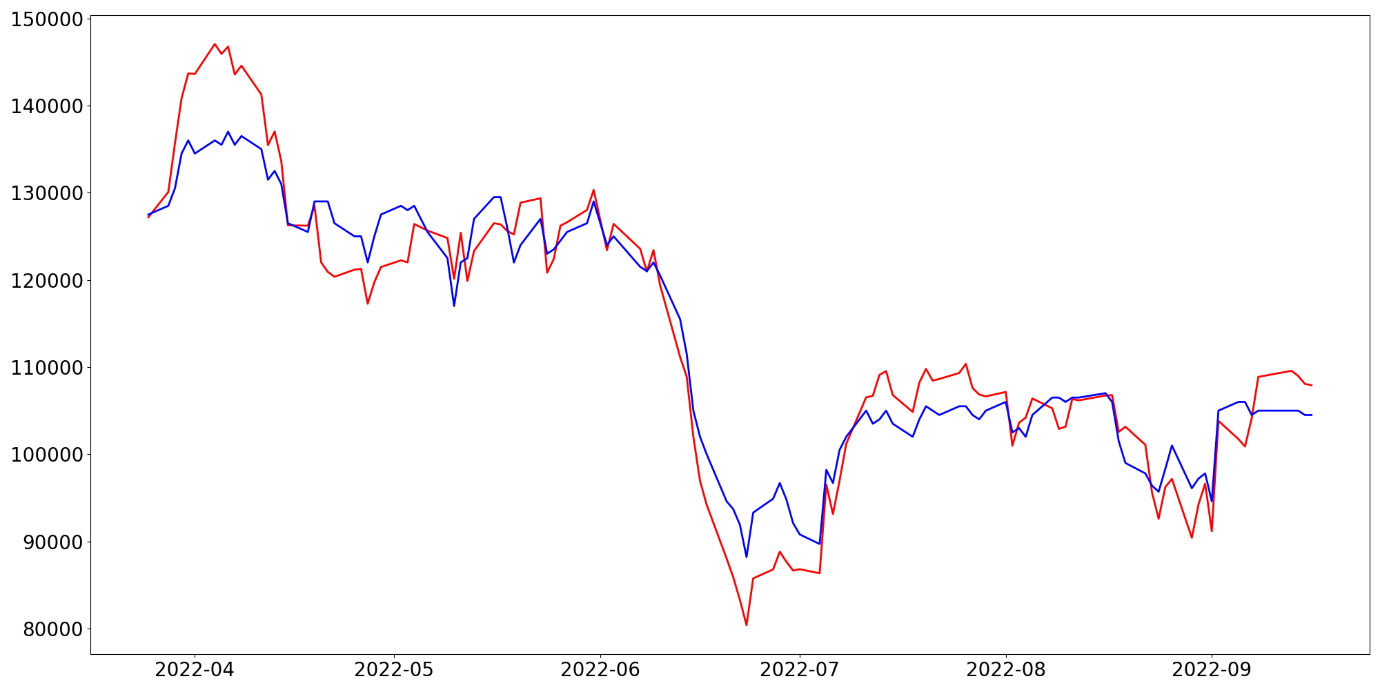 [ - : 실제값(종가) / - : 예측값(종가) ]