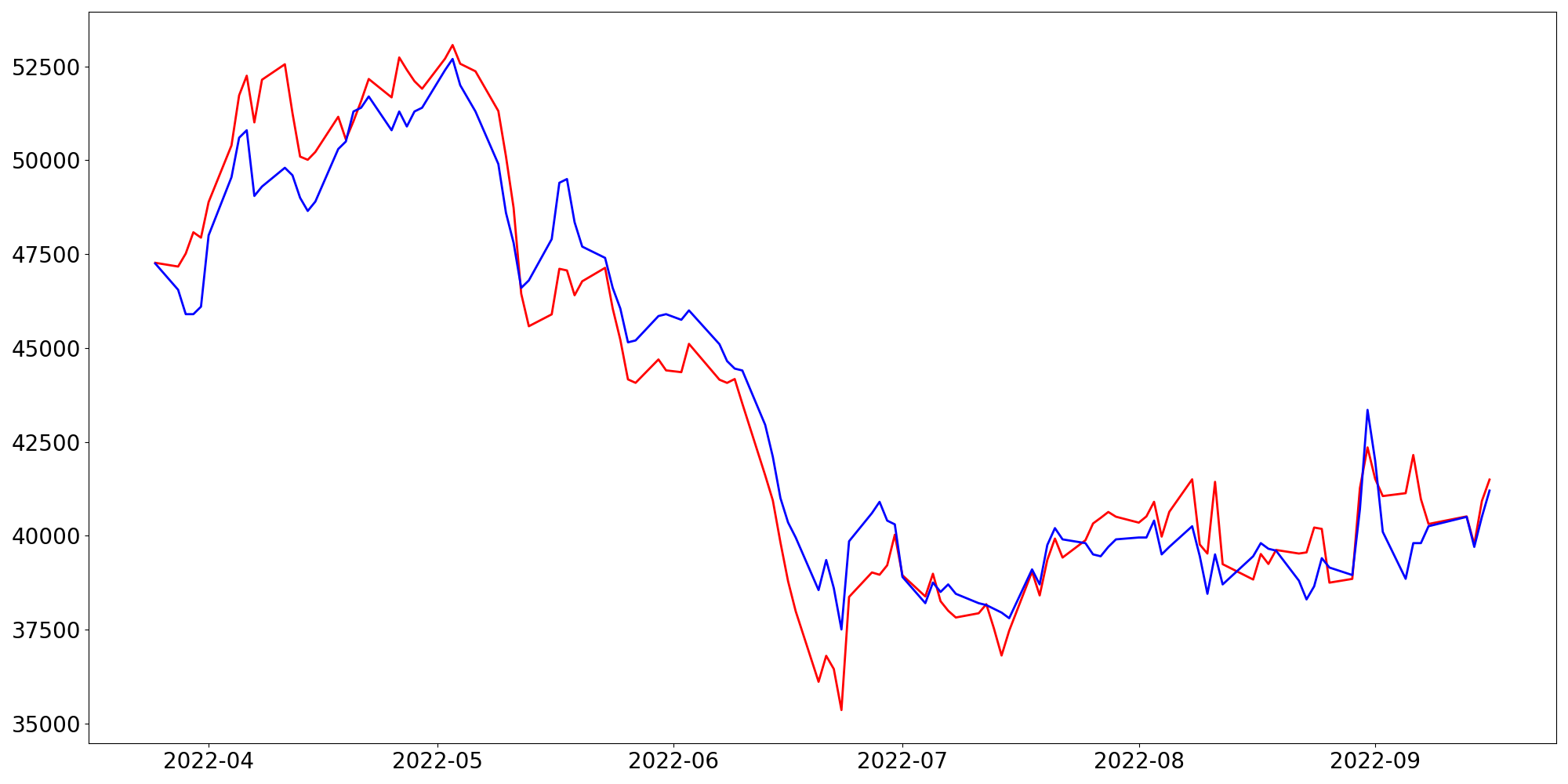 [ - : 실제값(종가) / - : 예측값(종가) ]