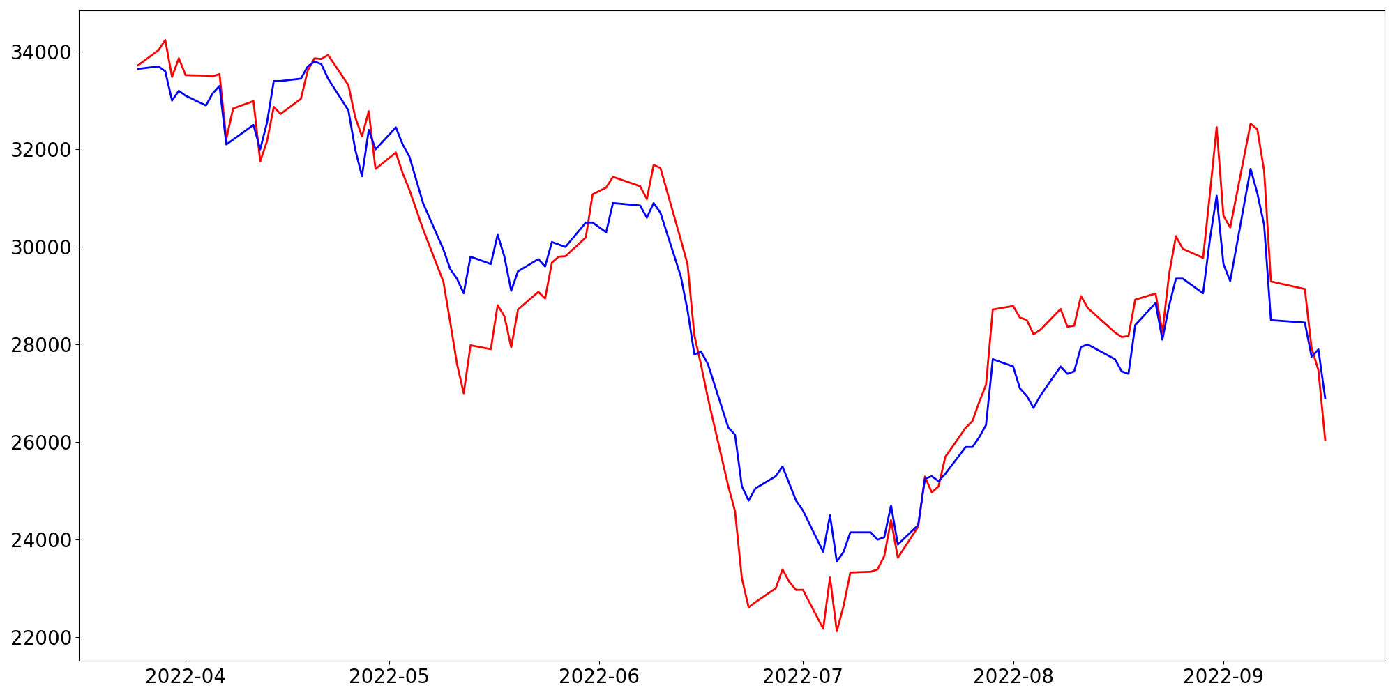 [ - : 실제값(종가) / - : 예측값(종가) ]