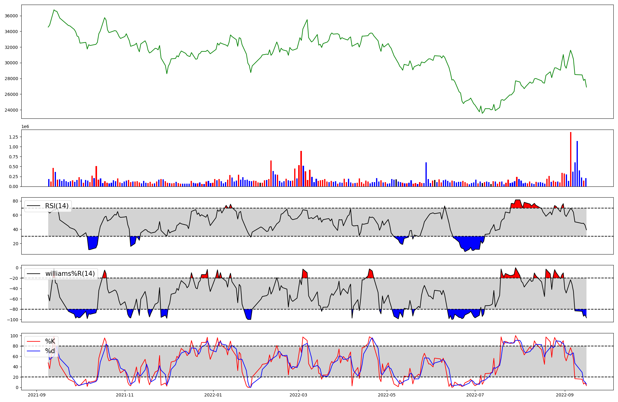 | RSI | Williams %R | stochastic(%K) | |