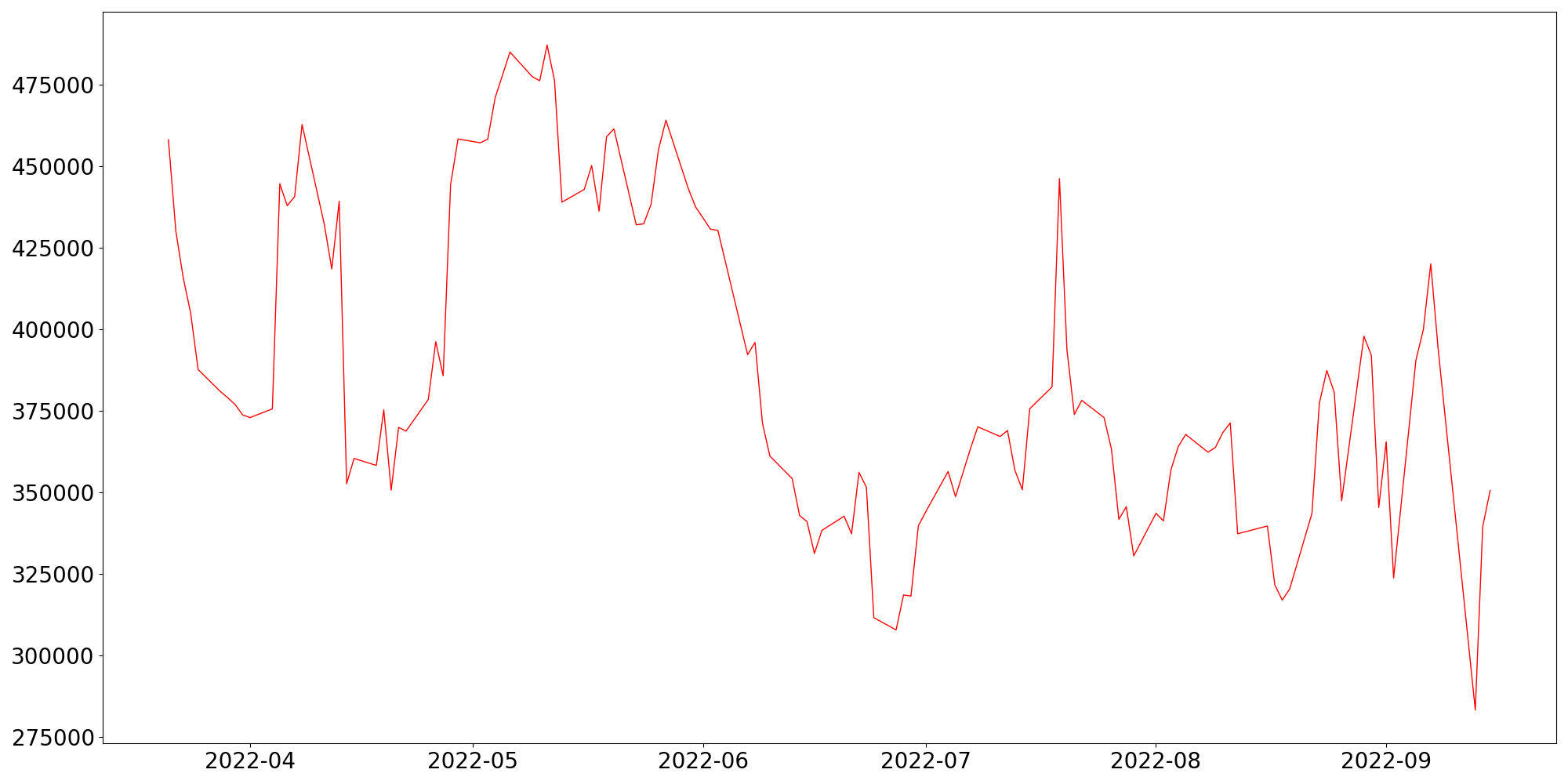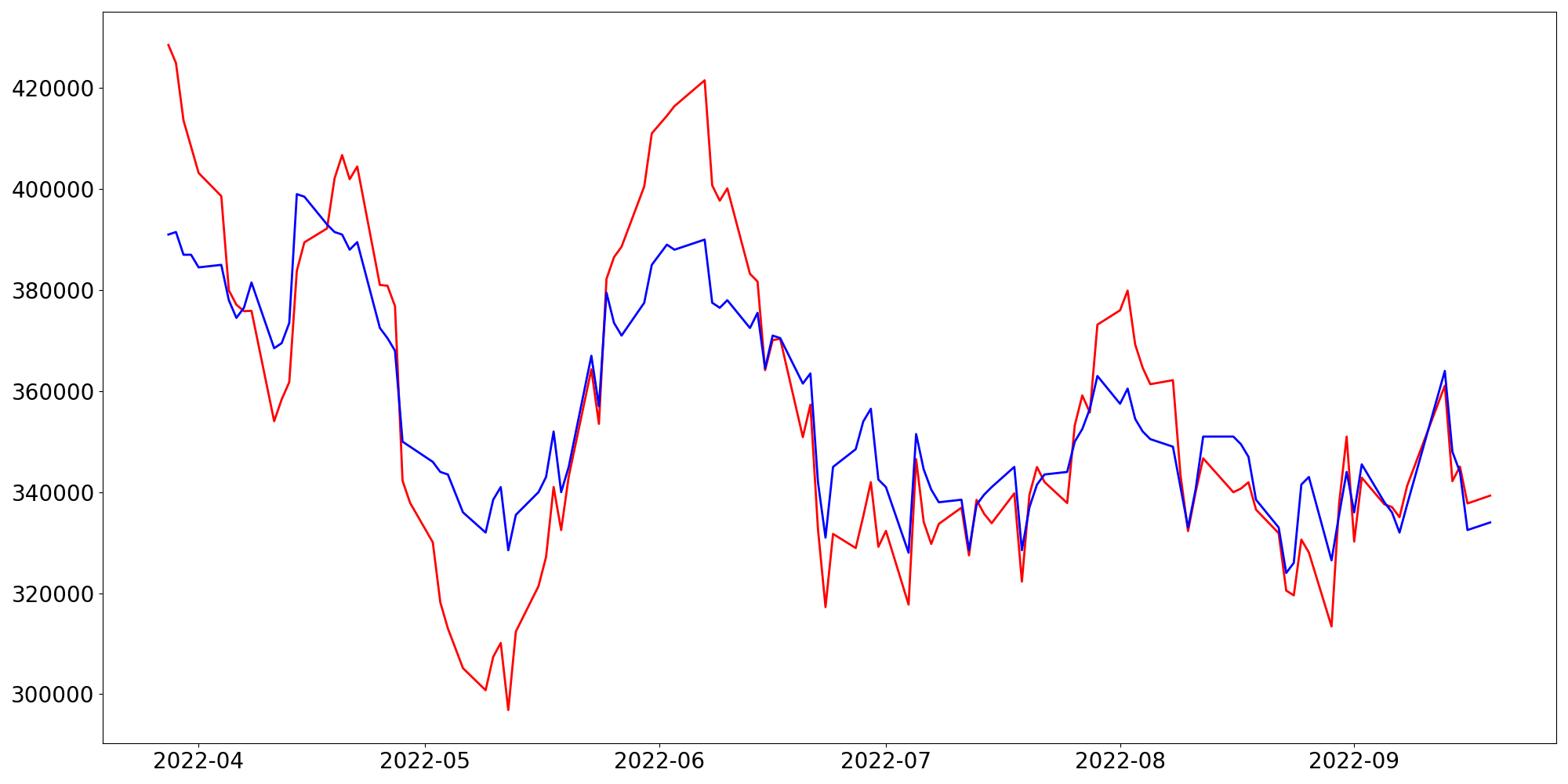 [ - : 실제값(종가) / - : 예측값(종가) ]
