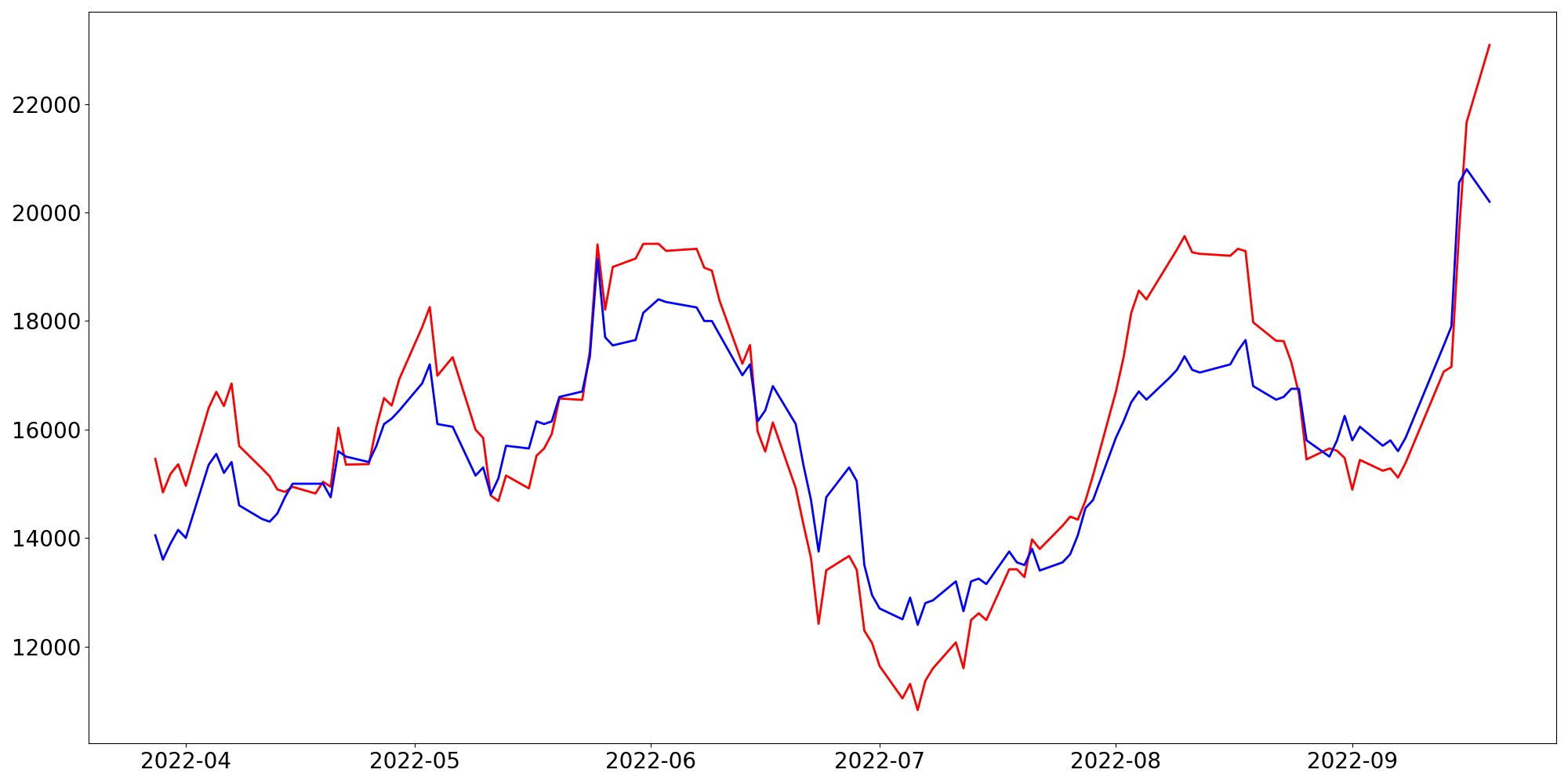[ - : 실제값(종가) / - : 예측값(종가) ]