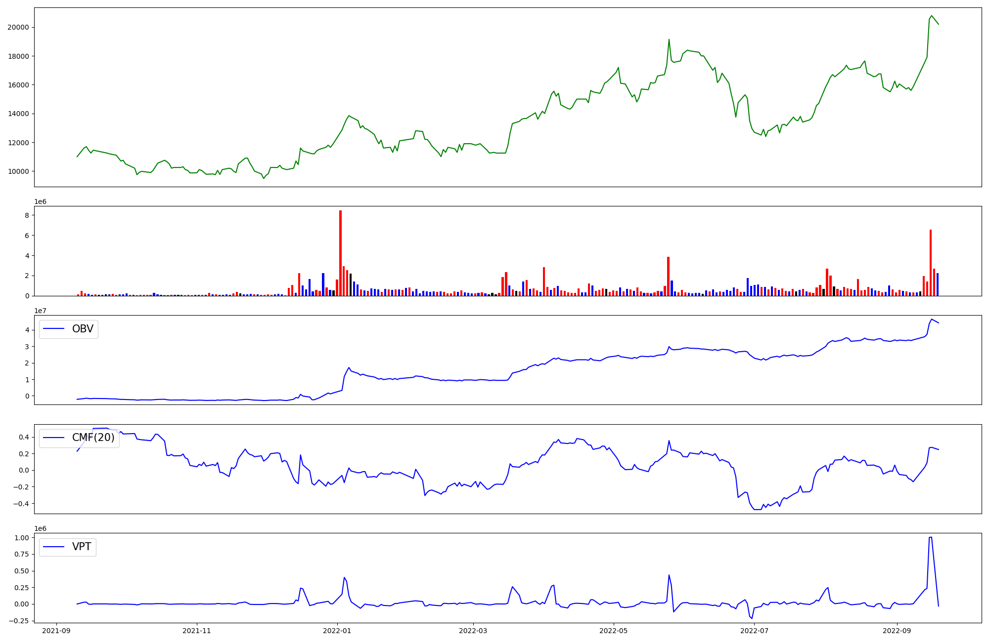 | OBV | CMF | VPT | |