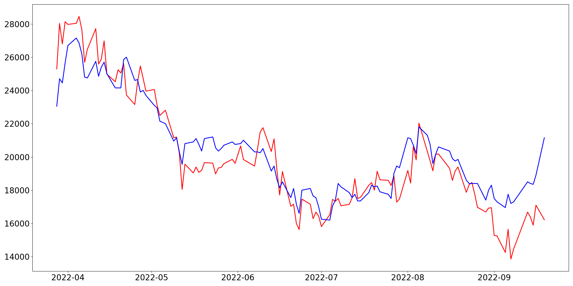 [ - : 실제값(종가) / - : 예측값(종가) ]