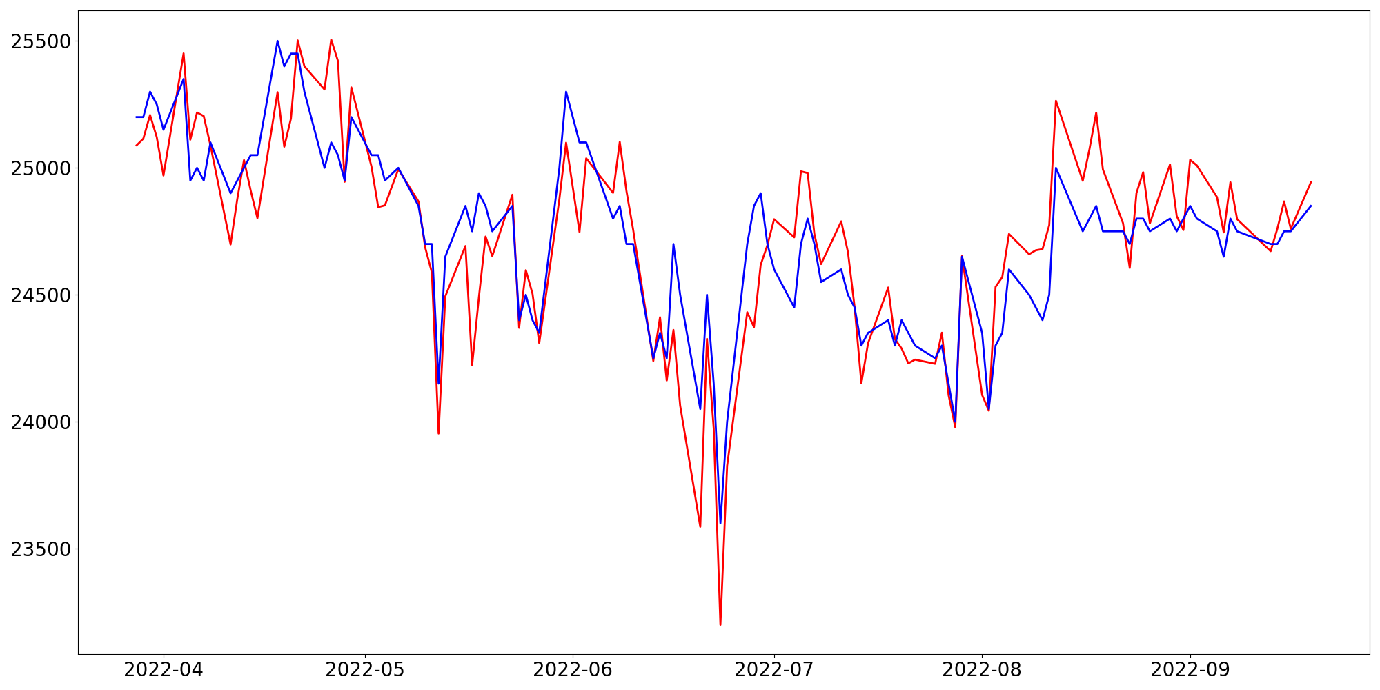 [ - : 실제값(종가) / - : 예측값(종가) ]