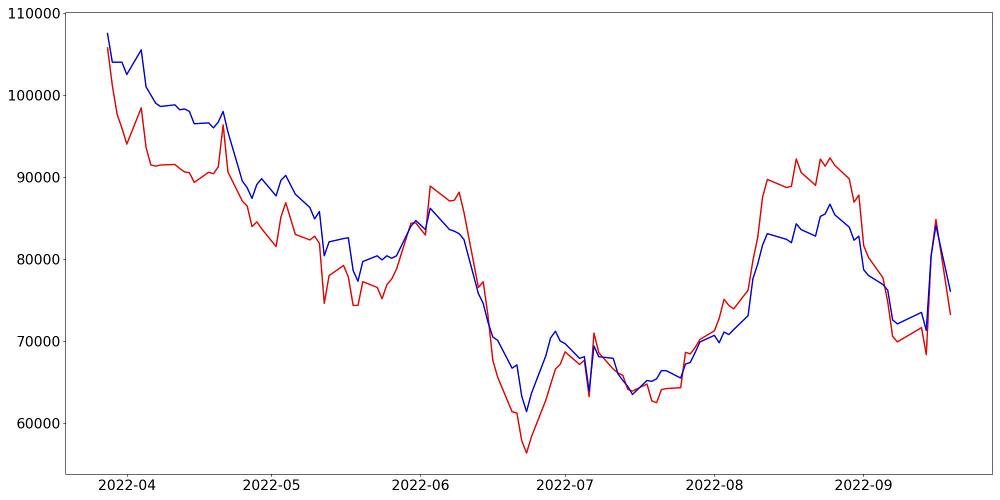 [ - : 실제값(종가) / - : 예측값(종가) ]