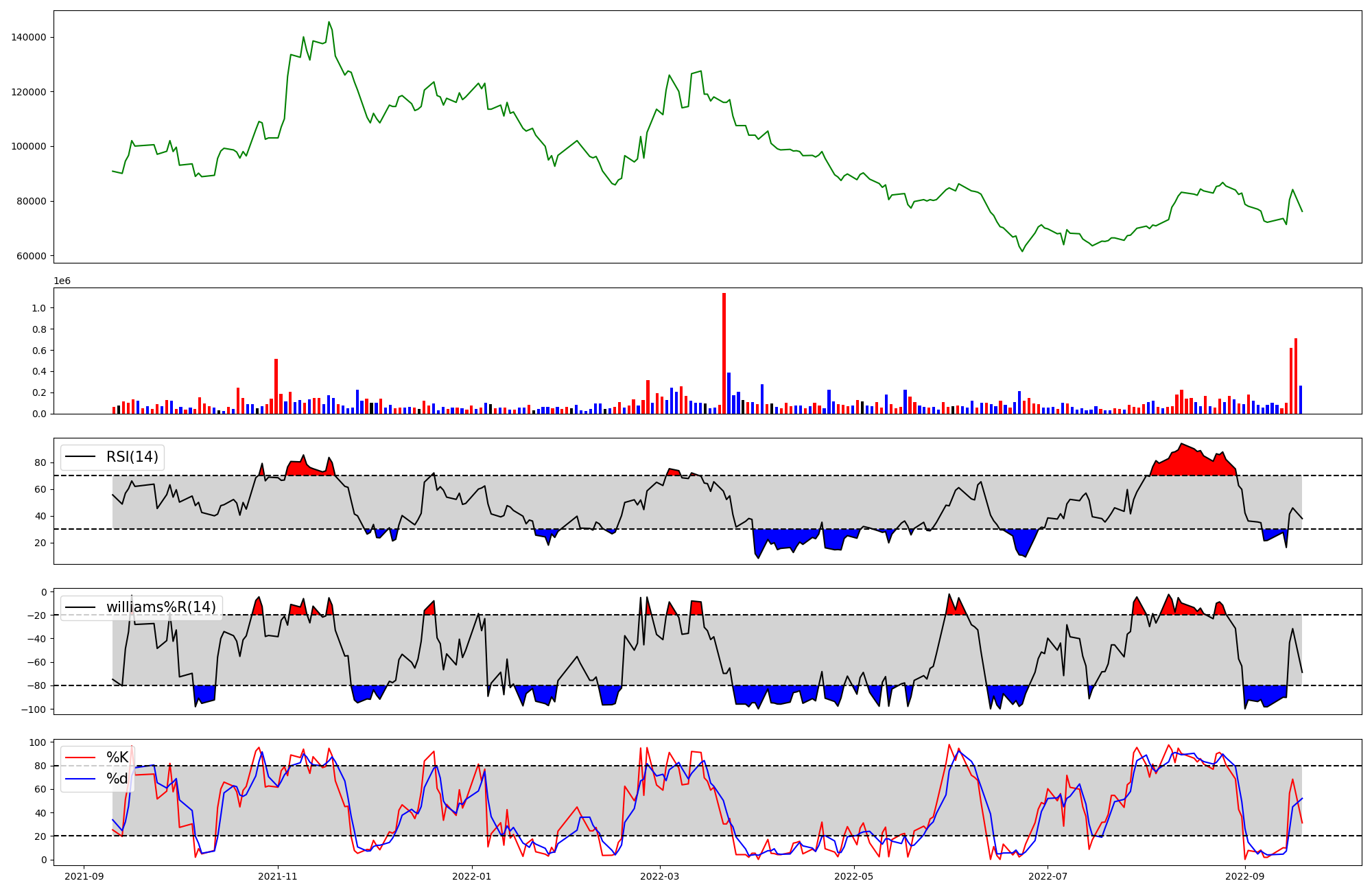 □ 오늘의 종가 : 76,100 (-8,000, -9.51%)