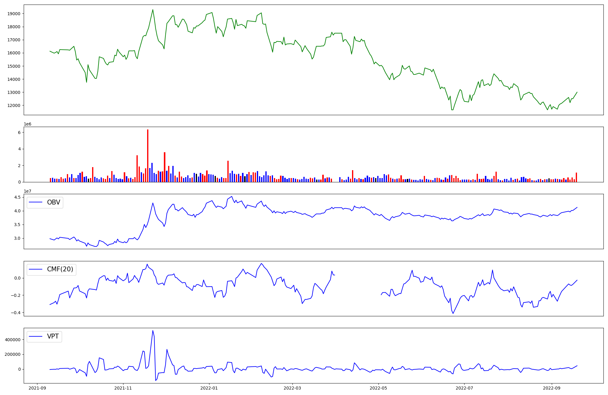 | OBV | CMF | VPT | |