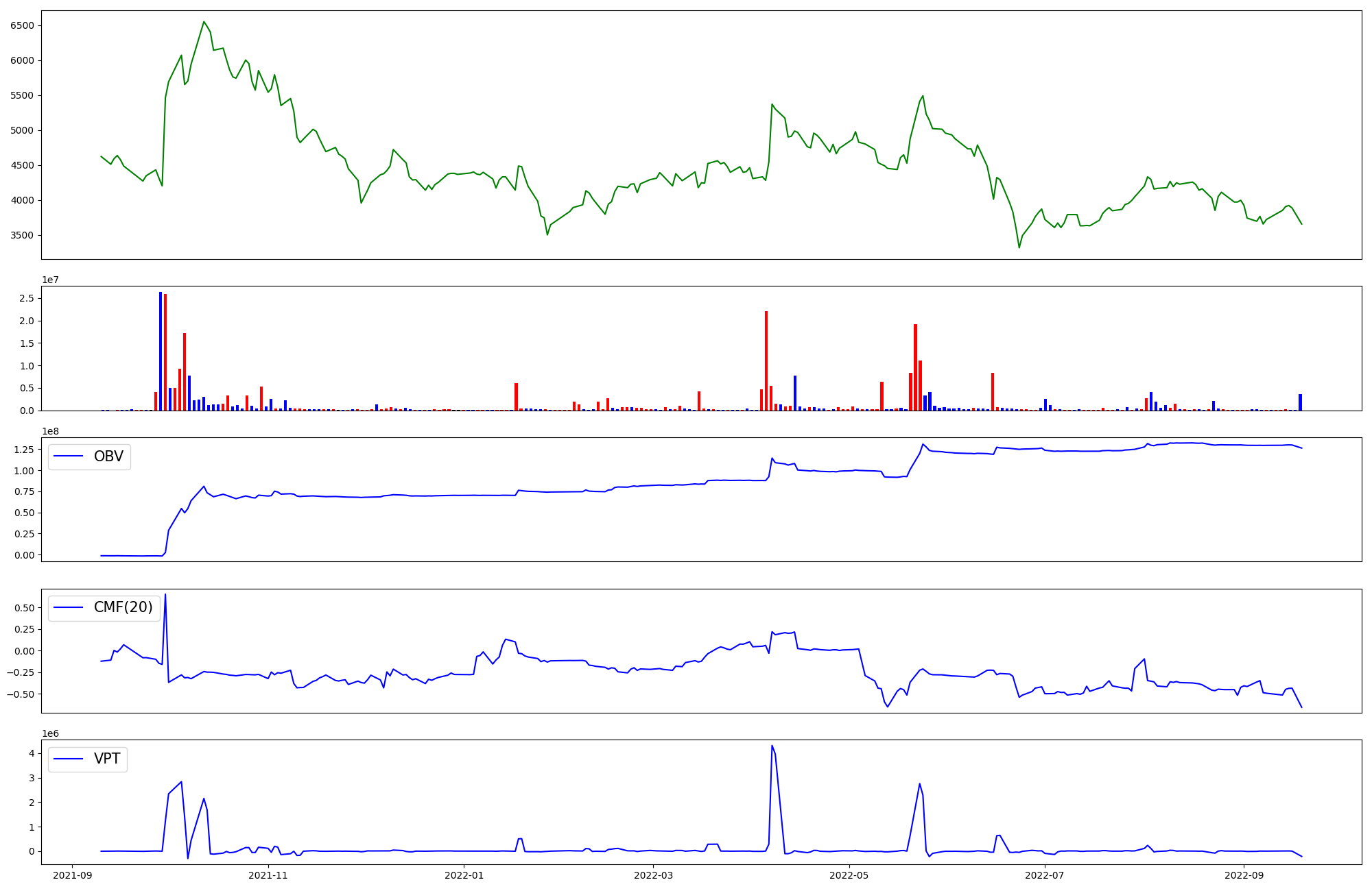 | OBV | CMF | VPT | |