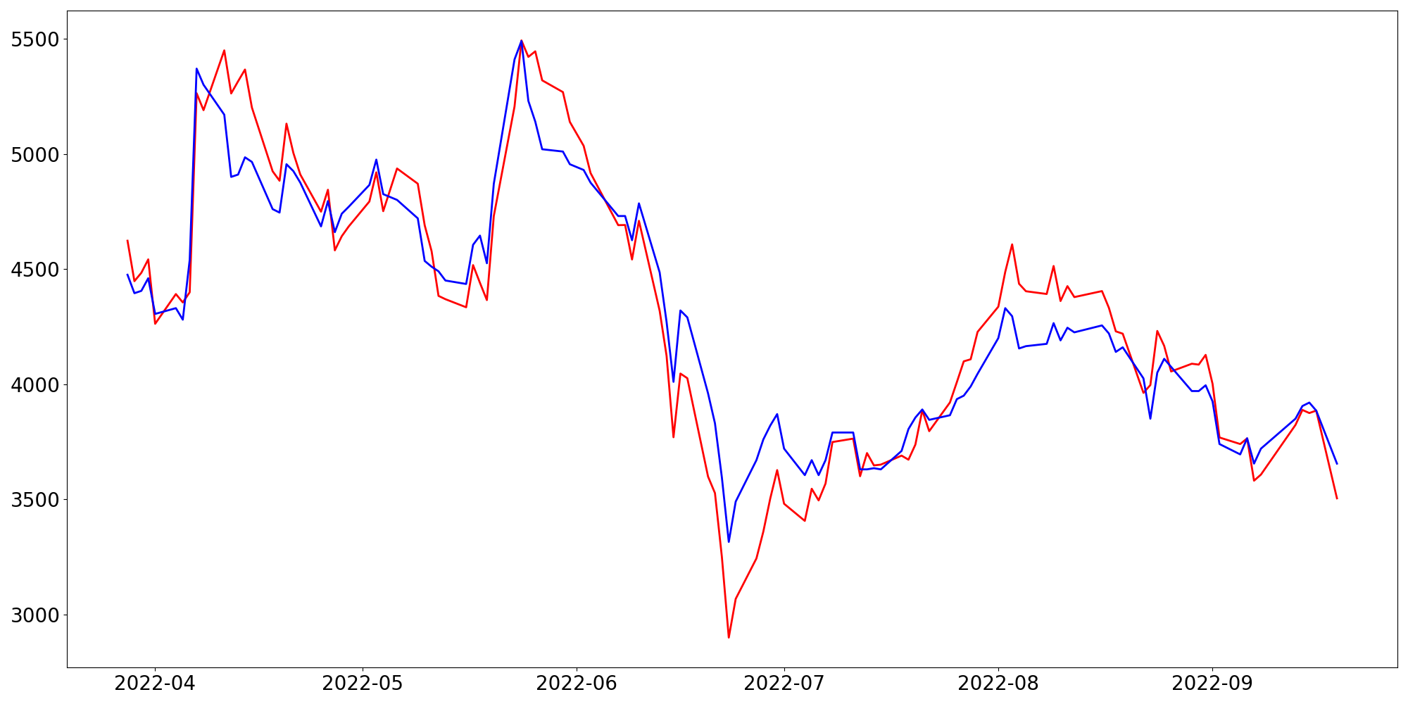 [ - : 실제값(종가) / - : 예측값(종가) ]