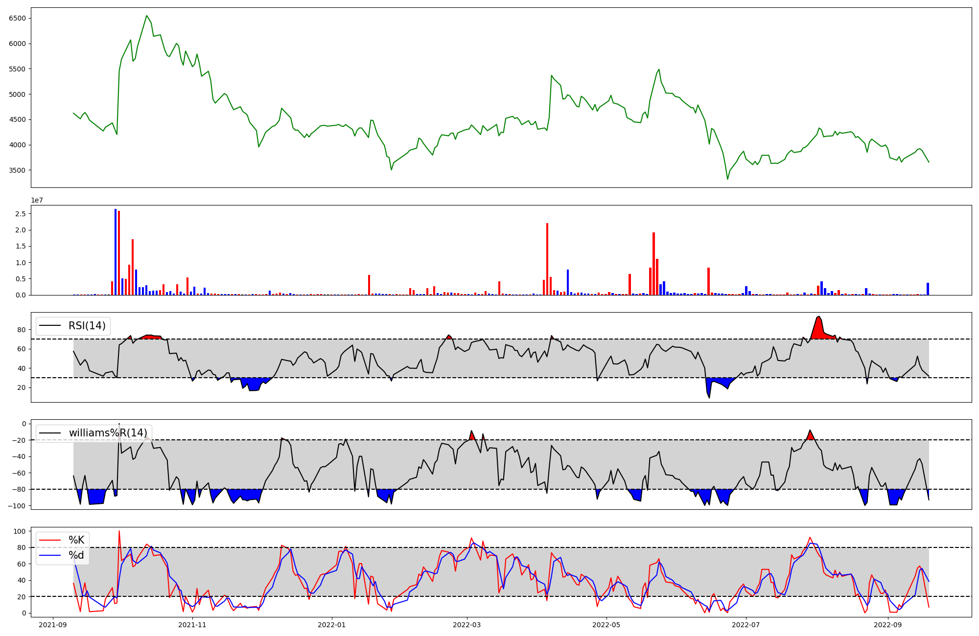 | RSI | Williams %R | stochastic(%K) | |