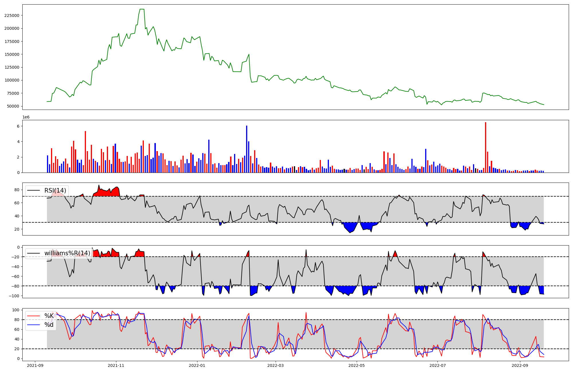 | RSI | Williams %R | stochastic(%K) | |