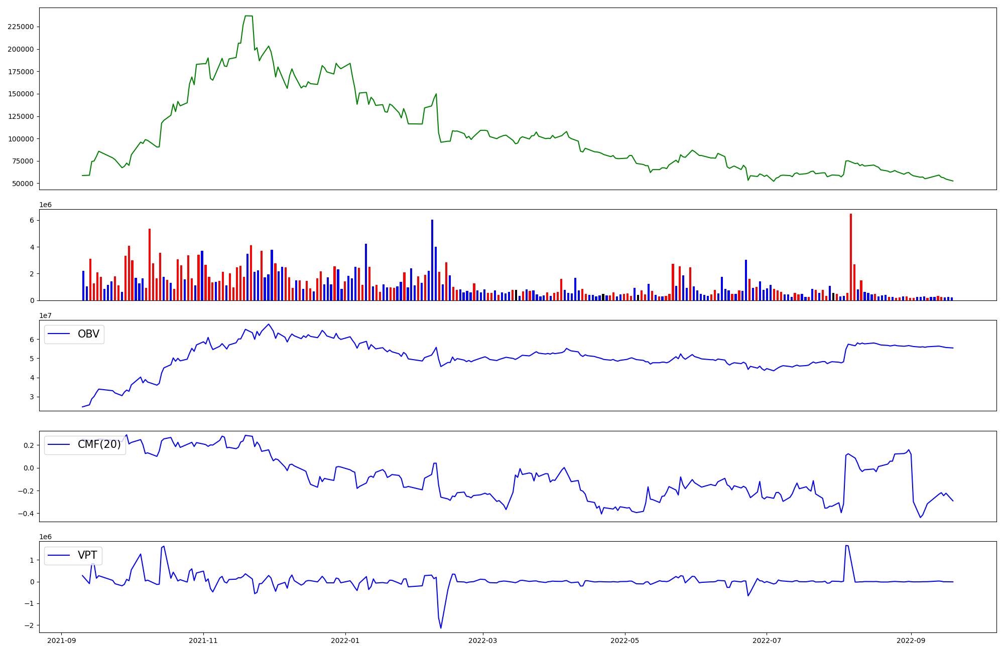 | OBV | CMF | VPT | |