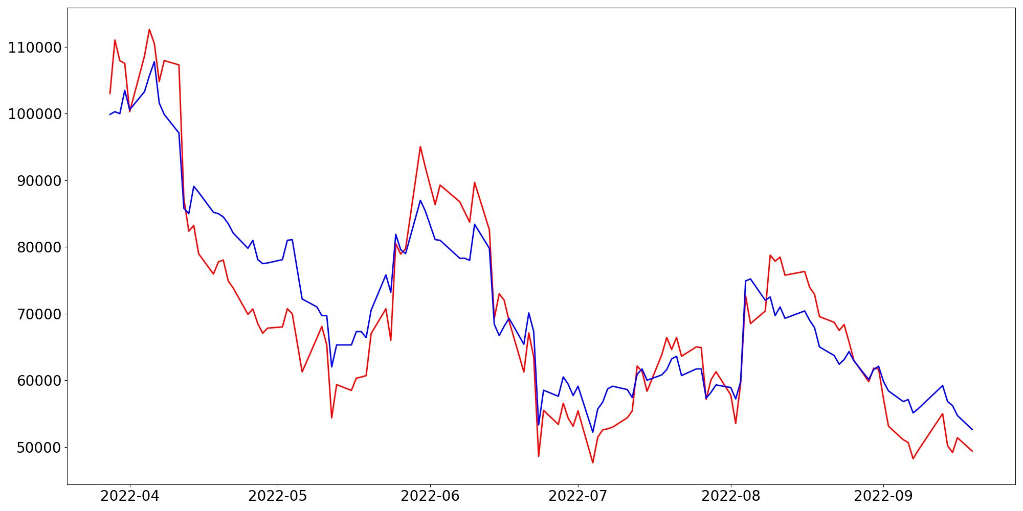 [ - : 실제값(종가) / - : 예측값(종가) ]