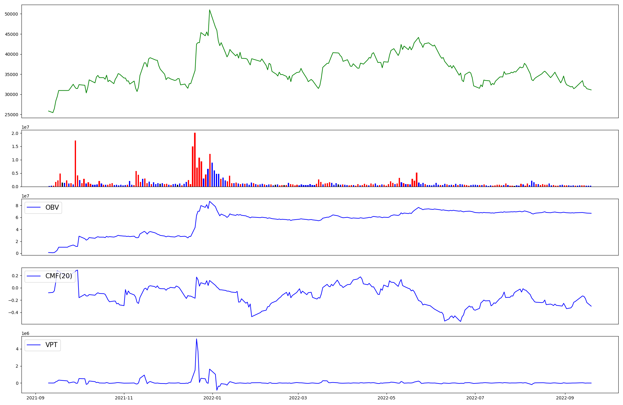 | OBV | CMF | VPT | |