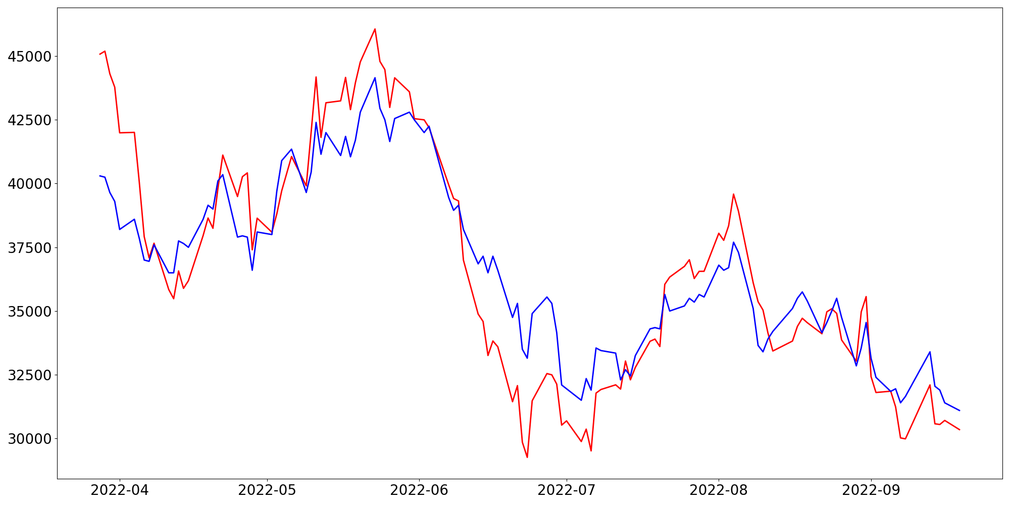 [ - : 실제값(종가) / - : 예측값(종가) ]