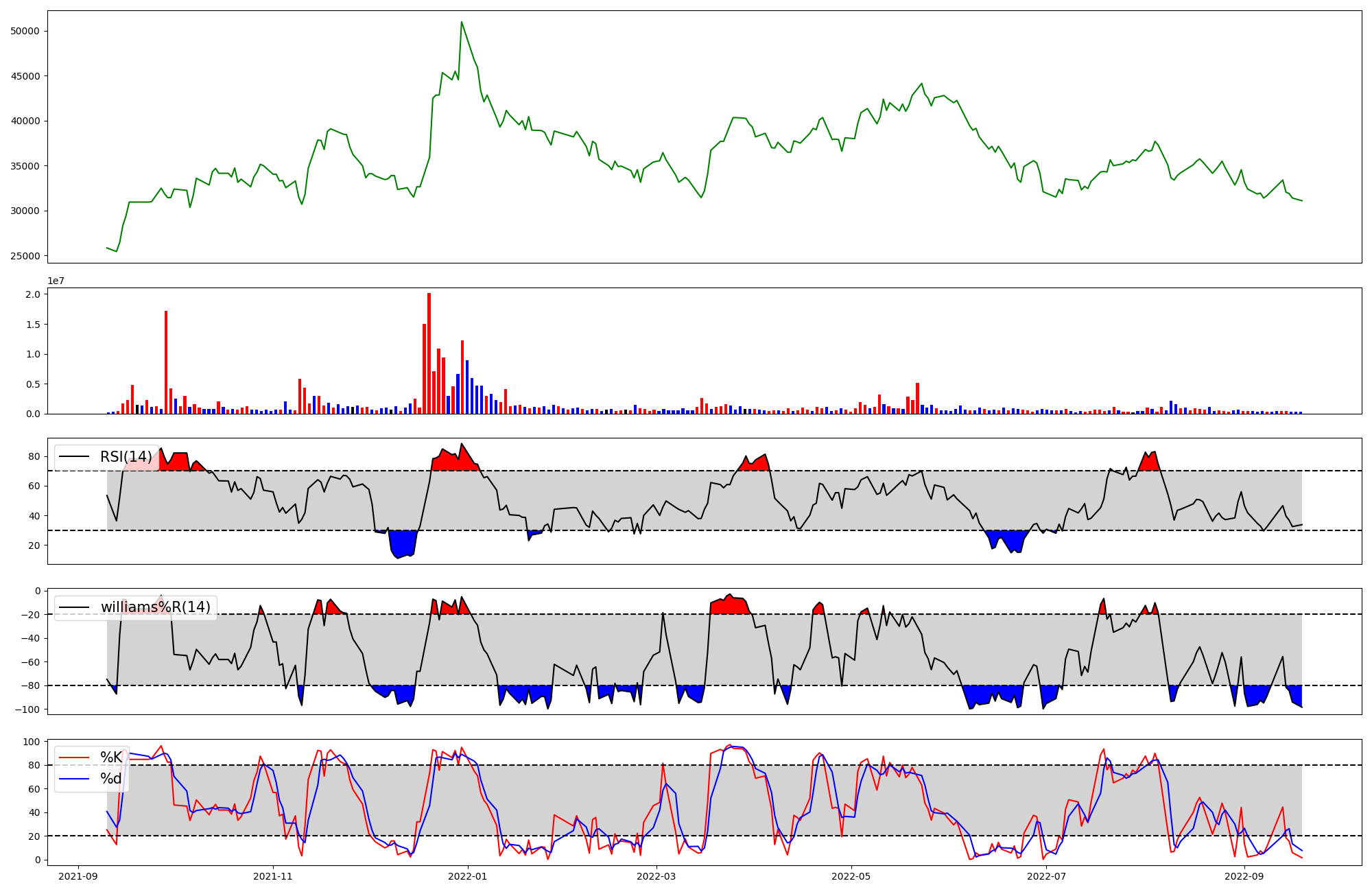 | RSI | Williams %R | stochastic(%K) | |