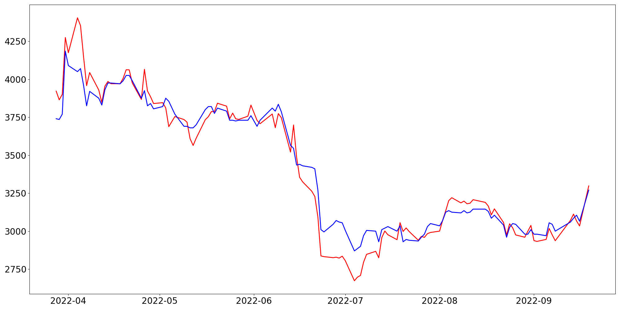[ - : 실제값(종가) / - : 예측값(종가) ]