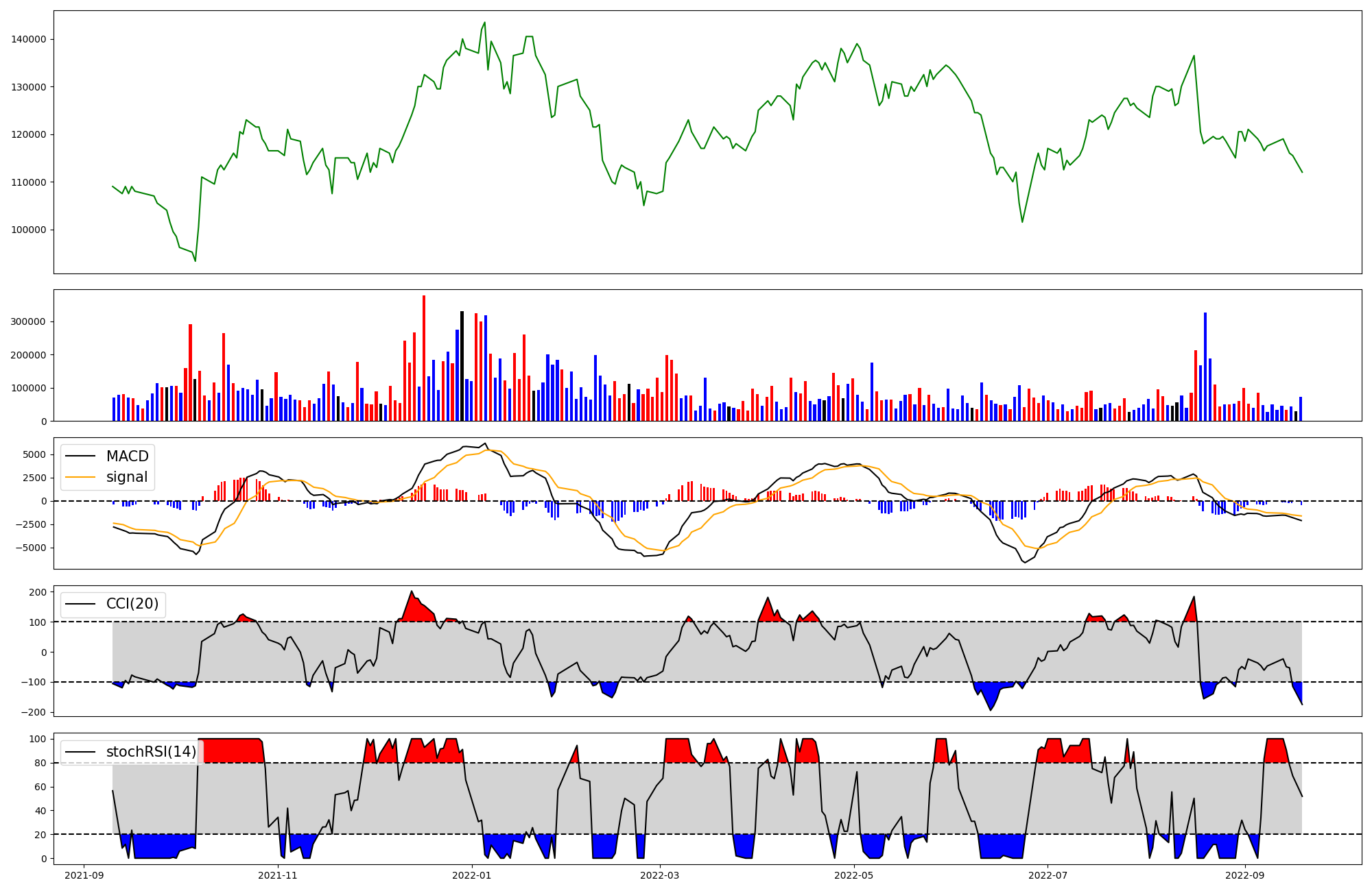 □ 중기 : 현재 종가가 중기(60일) 이동평균값(120,333원)을 하회 하여 중기적 추세 하락 중