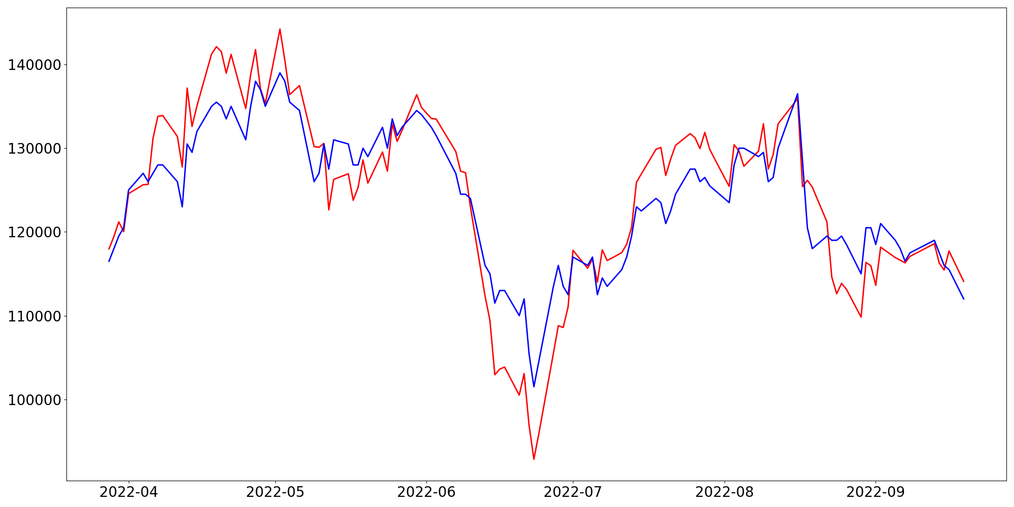 [ - : 실제값(종가) / - : 예측값(종가) ]