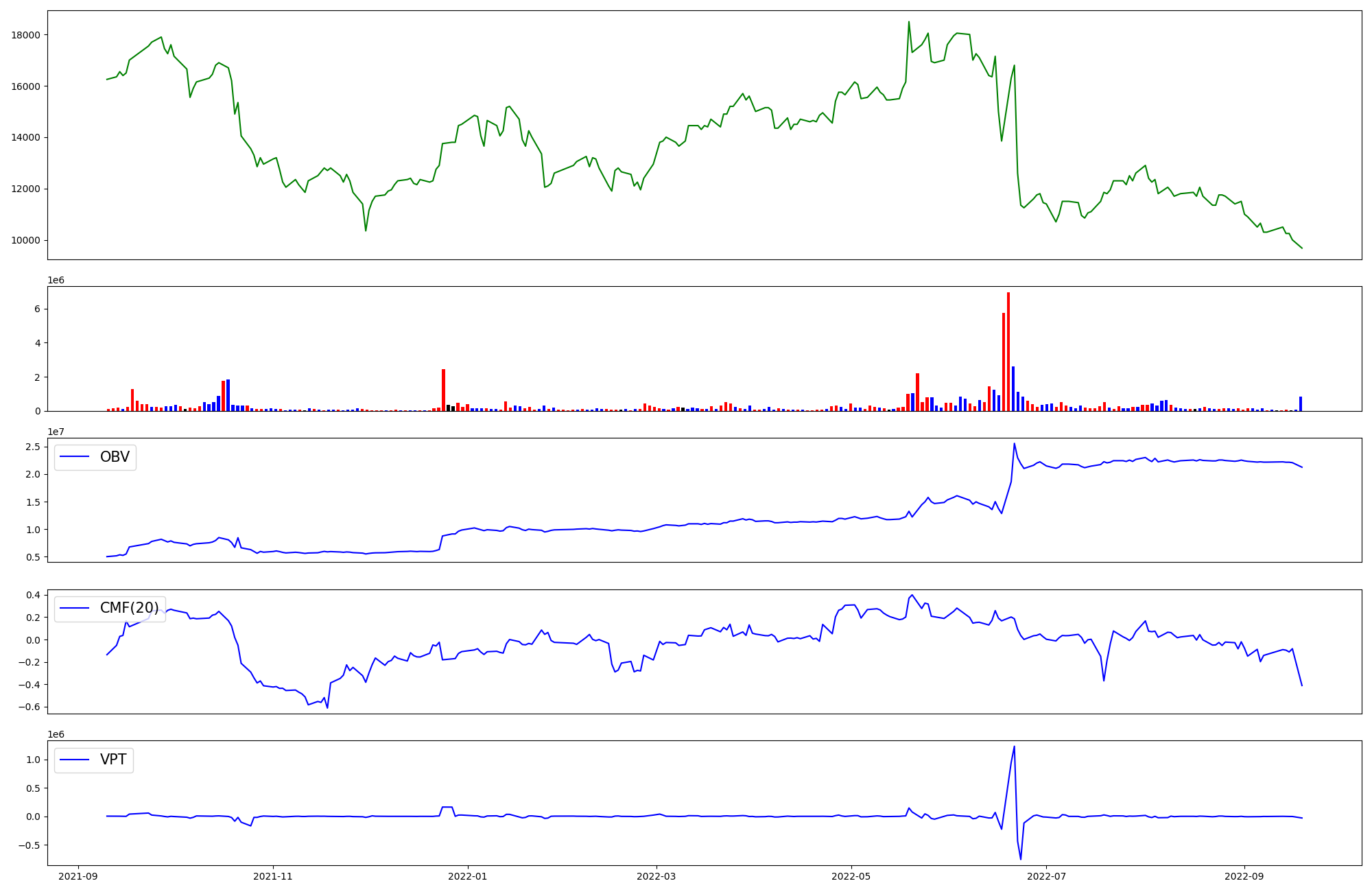 | OBV | CMF | VPT | |