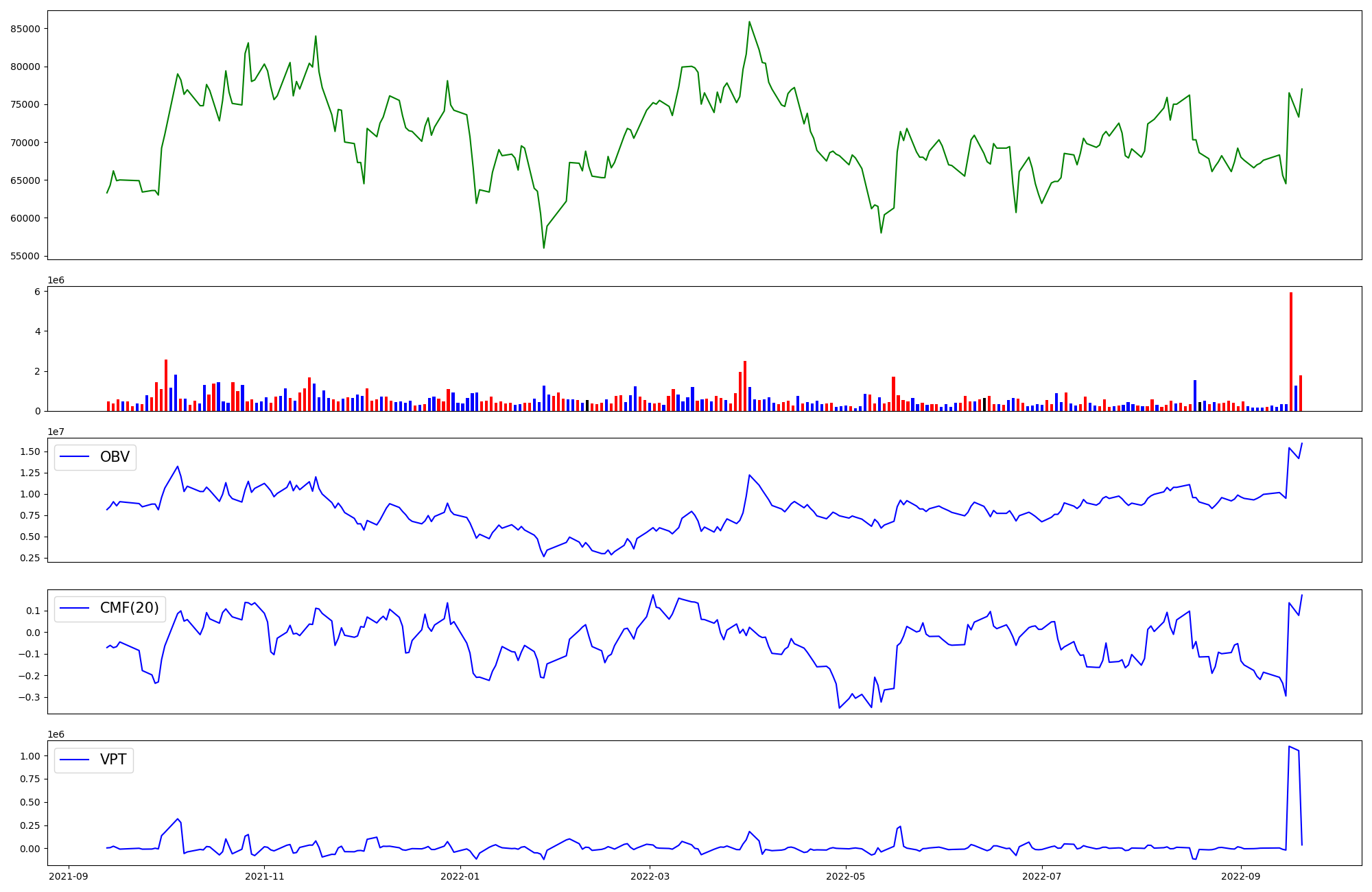 | OBV | CMF | VPT | |