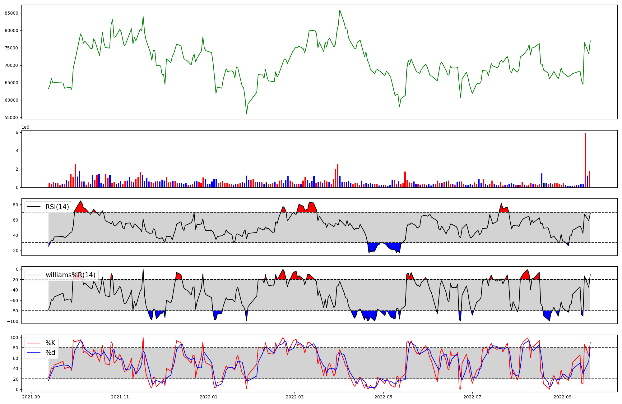 | RSI | Williams %R | stochastic(%K) | |
