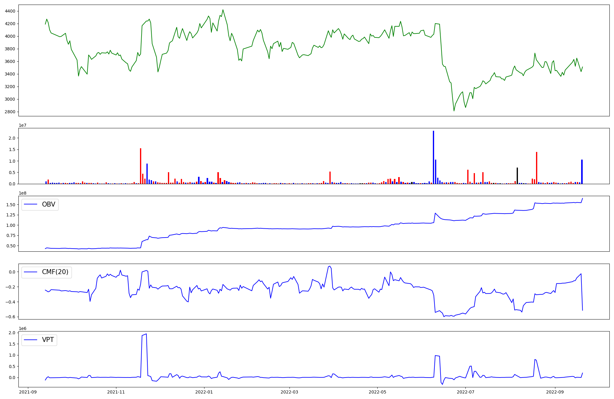 | OBV | CMF | VPT | |
