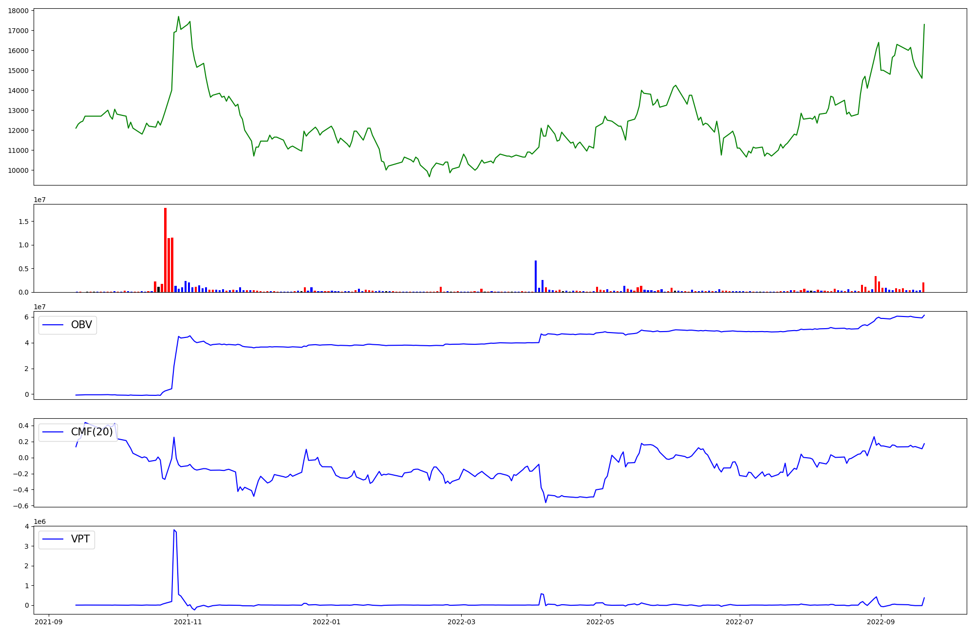 | OBV | CMF | VPT | |