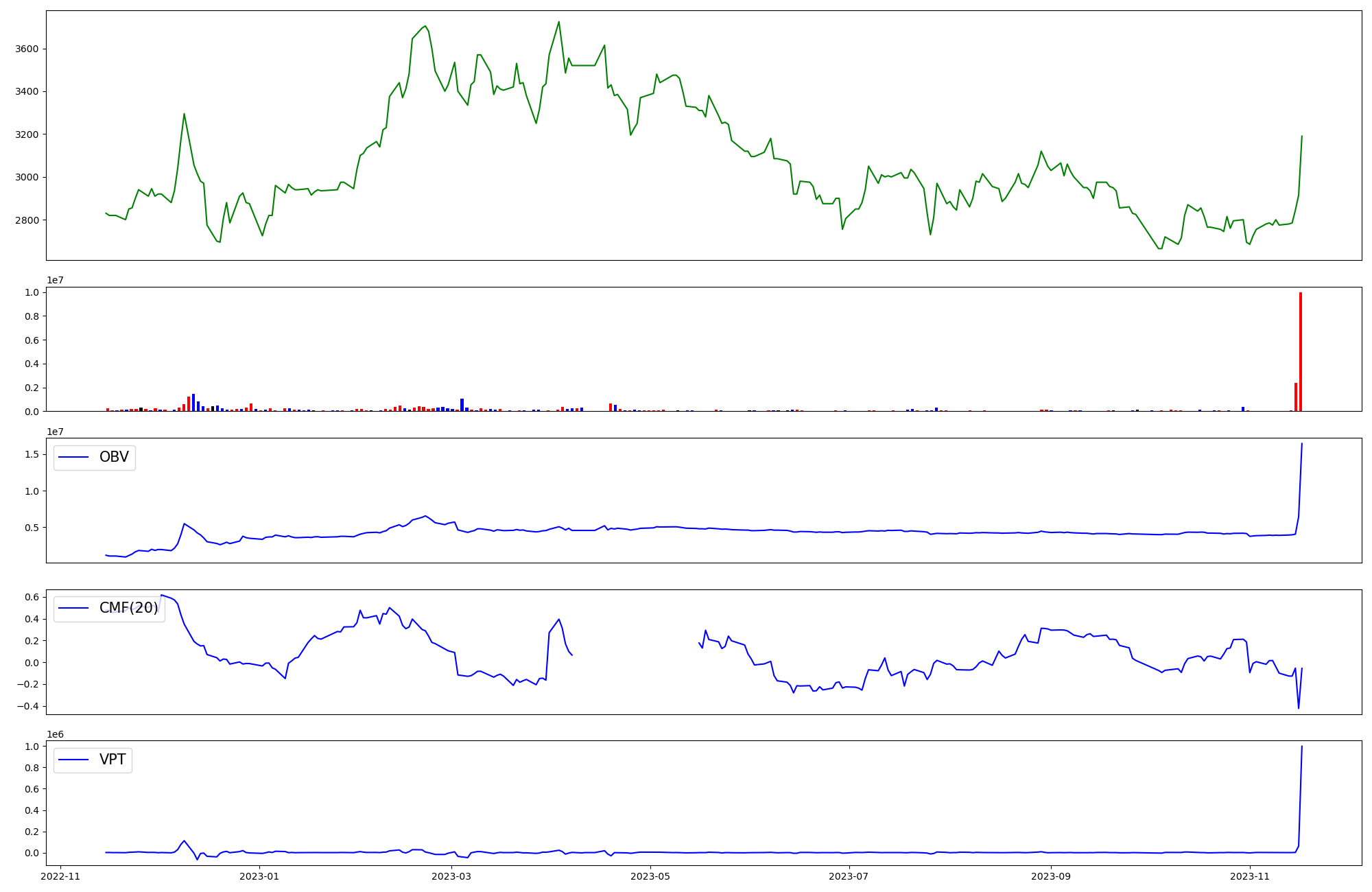 | OBV | CMF | VPT | |