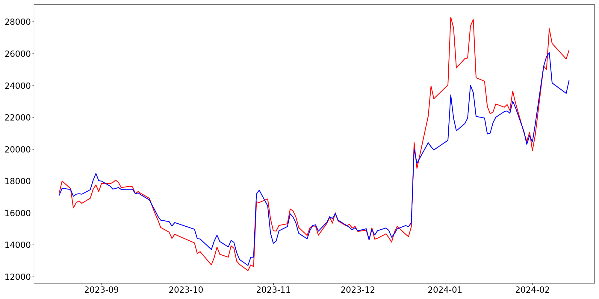 [ - : 실제값(종가) / - : 예측값(종가) ]